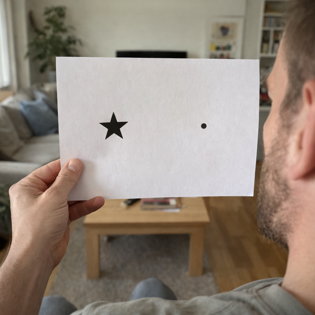 - Schaue mit dem rechten Auge nur auf den Stern.